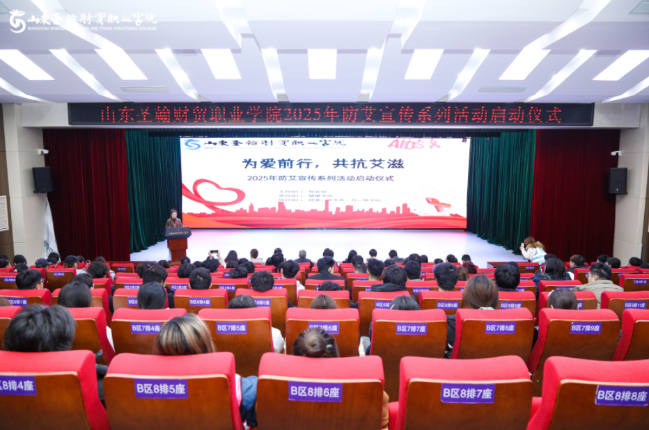2025年11月13日,山东圣翰财贸职业学院“为爱前行,共抗艾滋”2025年防艾宣传系列活动启动仪式在吉纯楼第二报告厅举行。本次活动以“凝聚青春力量,共筑防艾长城”为主题,长清区疾控中心、长清区人民医院专家团队,校领导及师生代表共同参与,旨在通过多维度宣传教育,提升青年学生防艾意识,营造“零歧视、共关爱”的校园氛围。