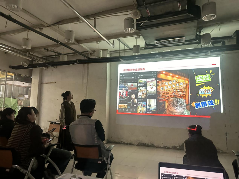 本次培训聚焦实战需求,构建了“短视频制作与直播带货”两大核心模块,内容兼具系统性与实用性。在短视频拍摄与剪辑环节,培训教师以商户常用的“剪映专业版”为核心工具,从界面基础认知切入,逐步拆解镜头语言运用、转场效果设计、音画同步技巧、调色滤镜搭配、智能抠像实操、特效贴纸添加等关键环节。通过“理论讲解+案例演示+实操指导”的模式,将复杂的视频制作流程转化为易懂易学的实操步骤,帮助商户快速掌握高质量宣传视频的制作方法。在抖音直播带货实操模块,培训教师从抖音电商带货权限的申请流程、手机直播的设备调试与操作步骤,到直播封面设计、标题拟定、话题选择等技巧,再到直播间商品添加、卖点提炼、互动话术设计等转化方法,通过现场演示、实例分析的方式进行深度拆解。