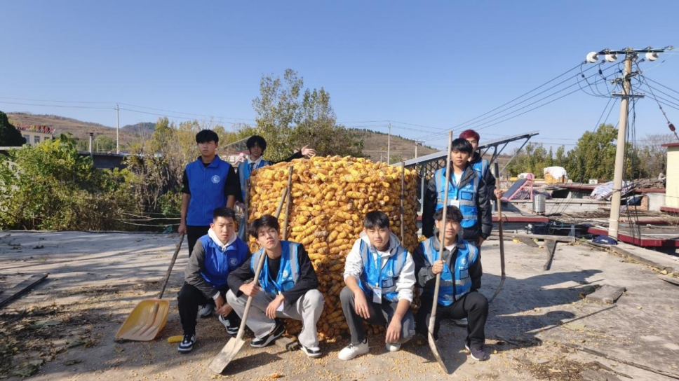 抵达五峰山脚下的农户庭院时,金灿灿的玉米堆满了晒场,志愿者们顾不上休整,迅速“变身”秋收帮手:有的弯腰清理晒场杂物,用工具将散落的玉米归整入仓;有的协助农户整理锈蚀的防护网,为粮食储存筑牢“安全屏障”;还有的帮着搬运秸秆、清扫落叶,让农家小院变得整洁利落。