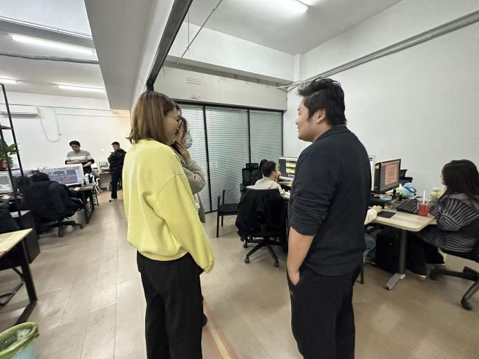 在企业负责人张永政陪同下,教师团队实地参观了薪火视效办公区、创作工坊及实训场地,详细了解企业业务范畴、技术优势及岗位设置,重点调研影视后期制作等核心岗位的技能要求与人才标准,直观感受行业前沿技术应用与创作流程,为优化人才培养方案积累实操依据。