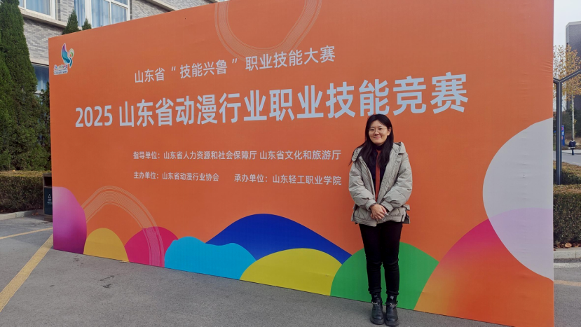 2025年11月23日,山东省“技能兴鲁”职业技能大赛——2025山东省动漫行业职业技能竞赛决赛在山东轻工职业学院落下帷幕。云商传媒学院教师李晓晶在职工教师组的激烈角逐中荣获三等奖。