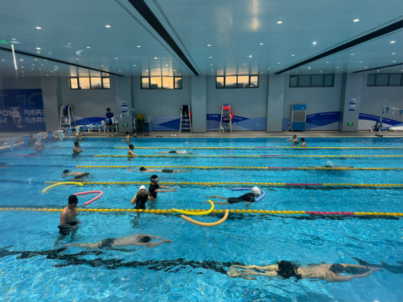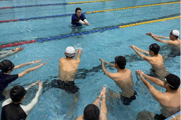 在过去的五周里,学生们展现了极高的学习热情和刻苦的训练精神。他们每周坚持进行多次水上实践,即使在最初的适应阶段面临恐水、动作不协调等困难,也从未轻言放弃。在教练团队耐心细致地指导下,学生们逐个攻克技术难点。从最初在水中蹒跚学步般的挣扎,到如今已能较为流畅地完成至少一种泳姿的连续游进,部分优秀学生甚至已开始接触和学习转身、出发等进阶技术,进步速度远超预期。