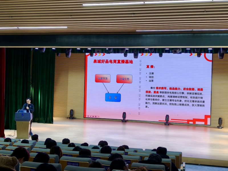 2025年11月25日,山东圣翰财贸职业学院云商传媒学院联合泉城好品直播电商基地,在学院第一报告厅举办电子商务及网络营销与直播电商专业人才需求研讨会。本次活动旨在通过企业视角深化产教融合,帮助学生明晰行业动态与就业方向,搭建校企协同育人新平台。创新创业学院院长盛雅欣、孵化运营科长马金满、云商传媒学院院长李学治、学院专职教师以及2024级电子商务、网络营销与直播电商专业全体学生参加了会议。