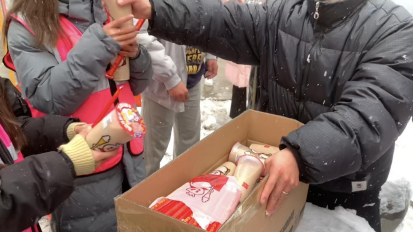 寒风凛冽,却丝毫没有削减大家的热情。同学们手握工具,相互配合,有的奋力铲雪,有的协力推雪,有的仔细清扫残留薄冰,忙碌的身影在皑皑白雪中构成一道温暖的风景线。清扫过程中,团总支书记马焕换老师亲切慰问正在扫雪的同学们,还贴心带来了热奶茶,一杯杯暖意融融的奶茶递到同学们手中,驱散了冬日的寒冷,更让大家感受到了学院的关怀。