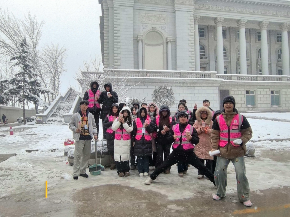 经过近两个小时的奋战,各区域积雪被彻底清除,干净整洁的道路重新呈现在师生眼前。清扫工作完成后,全体参与人员在主干道上合影留念,一张张笑脸定格在冬日里的温暖瞬间。