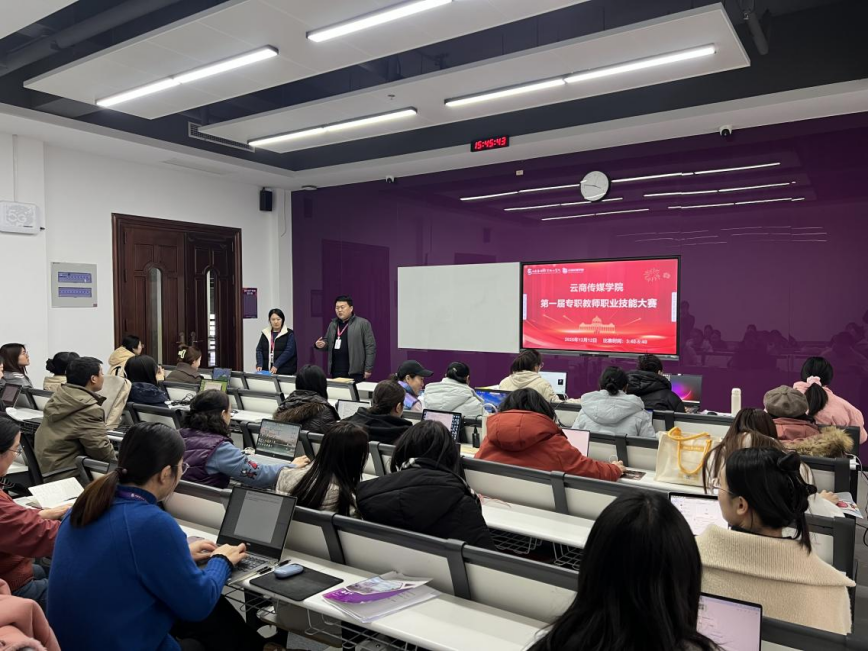 为落实立德树人根本任务,进一步加强师资队伍建设,提升专职教师教学技能与业务素养,12月12日,云商传媒学院第一届专职教师职业技能大赛在吉纯楼303教室顺利举行。本次比赛以“以赛促教、以赛促学、以赛促改、以赛促升”为总体思路,为全院教师搭建了交流教学理念、切磋专业技艺的优质平台。