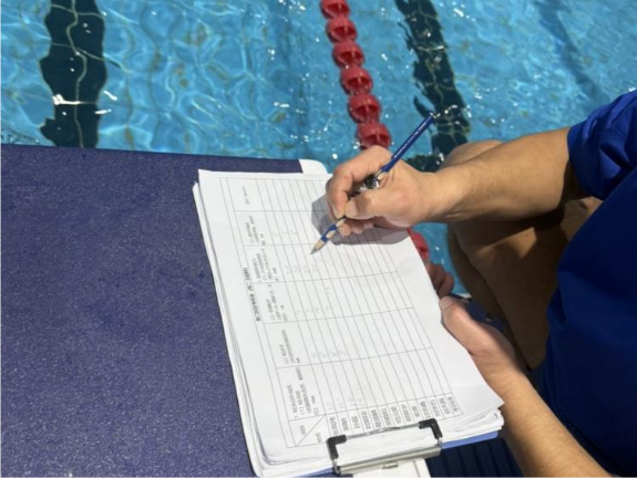 考核伊始,理论笔试环节在俱乐部休息室有序开展。本次笔试聚焦游泳安全知识,涵盖溺水预防、应急处理、泳池安全规范等核心内容。考场上,学生们沉着冷静、积极作答,将课上所学与日常积累的理论知识充分运用,认真书写的答卷,是对这段时间学习的最好总结。