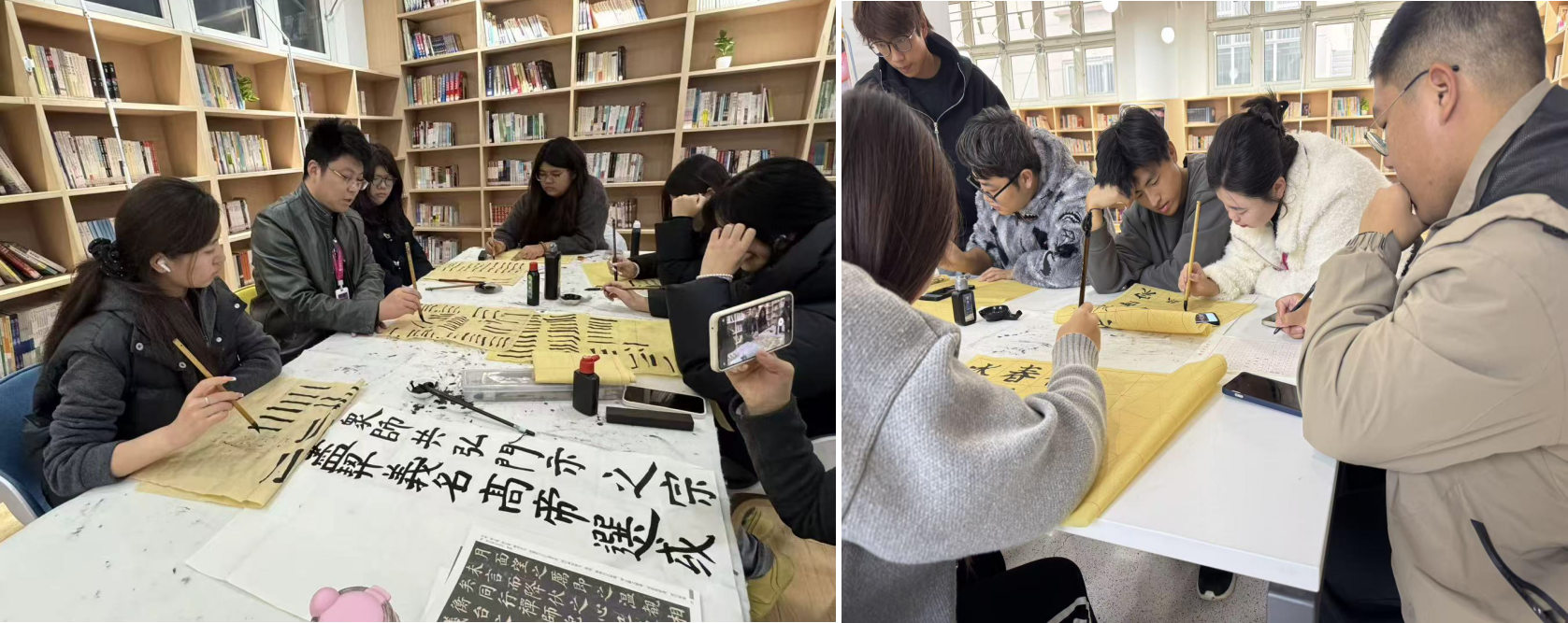 课堂之上,翰墨飘香间尽是传承与创新的碰撞。社团指导老师徐洪涛、李雅以“溯源传统、启发创新”为导向,带领学生回溯书法艺术的千年脉络——从甲骨刻辞的古朴神秘,到篆隶的庄重雄浑,再到楷行草的灵动洒脱,在系统梳理书体演变历程中,让学生沉浸式领略中华传统艺术的独特魅力,夯实双创育人的文化根基。