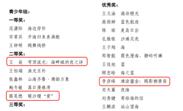 近日,2025年山东省海洋摄影大赛获奖名单揭晓,山东圣翰财贸职业学院云商传媒学院王春晓老师指导的学生团队凭借优秀作品在大赛中脱颖而出,斩获青少年组二等奖2项、优秀奖1项。