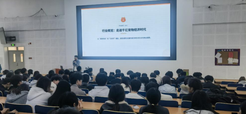 讲座伊始,主持人致欢迎辞,强调校企协同育人在新电商时代的重要价值。随后,小水宠物公司直播总监王文生围绕“宠物行业的发展与机遇”展开分享,系统梳理了其从崛起到千亿市场规模的发展脉络,指出随着消费升级与宠物角色向“家庭成员”转变,宠物行业正迎来智能化、品质化、服务多元化的发展新阶段。