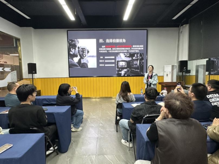 于楠老师重点讲解了短视频拍摄视角、画面构图及镜头形式三大核心内容。于老师结合大量优秀案例,细致讲解了远景、全景、中景、近景、特写等不同拍摄视角的运用场景,三分法、对称式、引导线等经典构图形式的美学效果,以及固定镜头、运动镜头、特写镜头等各类镜头的表现力,指导参训人员如何通过专业的视听语言提升视频质感与观赏性。