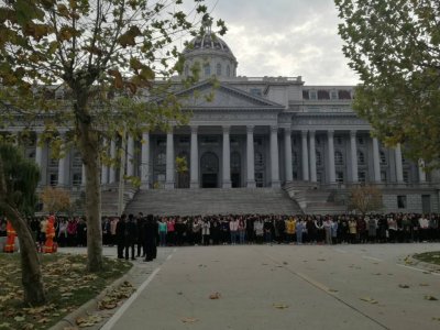 中午13:00整火警哨声响起,撤离命令立即下达,在辅导员和宿管老师的引导下,同学们立刻用湿毛巾握住口鼻弯着腰、猫着步沿着学校指定的疏散通道快速撤离到指定的安全地带,随后由人员清点组的老师维持秩序和清点人数,并层层向上汇报,大约用时3分55秒1号公寓2100多名师生全部安全疏散完毕,消防演习过程中各个环节的联动紧凑有序。