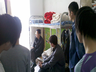 2012年4月16日上午,学生处杨磊处长、建筑工程学院张永梓副院长、汽车工程学院沙铁柱副院长、财贸学院李磊副院长走访了五号学生公寓。
