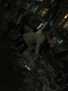 11月25日晚间,伴随着凛冽的寒风,宿舍管理中心吕尊明、杨其义带领夜班老师组织管理员,清扫公寓楼门前、台阶和通往主干道路积雪,确保了学生进出公寓楼安全。老师们的手和脸都冻得通红,然而,这一切丝毫没有影响他们的热情,大家顶着寒风,团结协作。学校宿舍学生干部也积极的加入到了清扫队伍中。由于条件的限制,同学们的除雪工具大多是从宿舍里带出来的簸箕和扫帚,还有从后勤处借来的少量铁锹。晚间气温骤降使路面都结了冰,加大了大家扫雪工作的难度。然而,这丝毫没有影响他们的热情与效率,圣翰学院师生吃苦耐劳、顽强拼搏的奋斗精神也在这一刻得到了充分展示。