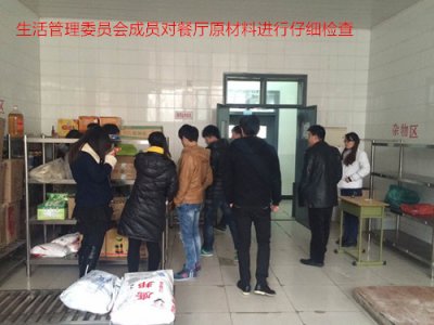 为了切实做好对学校学生以及广大教职工的身体健康负责,生活管理委员会于12月10日星期三13点50对食堂后厨进行了第一次卫生大检查,参与本次卫生检查活动的领导有学生教育管理科杨玉斌老师,学校餐厅总经理以及生活管理委员会的干部和成员。在检查的途中,生活管理委员会成员切实观察了厨房的前厅,面包房,馒头房的卫生状况以及对餐厅食用油、大米等食用原材料的生产日期、保质期等作出认真仔细的检查。