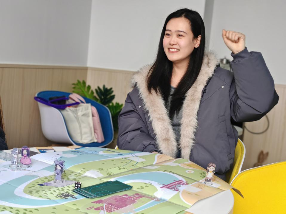 活动中,各位老师发挥冒险家精神,按照事件卡内容确定移动格数或停留回合数,抽取任务卡完成合作任务或者分享自身经历。在真心话环节,专职教师王敬婧谈到自己印象最深的景色:“日照金山的景象让我最印象深刻,第一缕阳光在山峦之间穿透晨雾,朦胧的山峰被金辉一扫,闪耀着光芒,留给我的不仅是震撼,还有对美好生活的期盼。”在抽到“用一种颜色描述自己的性格”时,轮岗辅导员秦雨溪分享到:“蓝色比较符合我的性格底色,独处时会想很多,有时会有忧郁的情绪”,姚主任分析到:“蓝色确实会让人想到阴郁和孤独这样的词语,但是换一个角度,望向天空,蓝色也会给人带来希望和活力,关键在于我们如何看待问题。”此外,还有各种大冒险活动,教师之间合作完成挑战,沟通交流,畅所欲言。