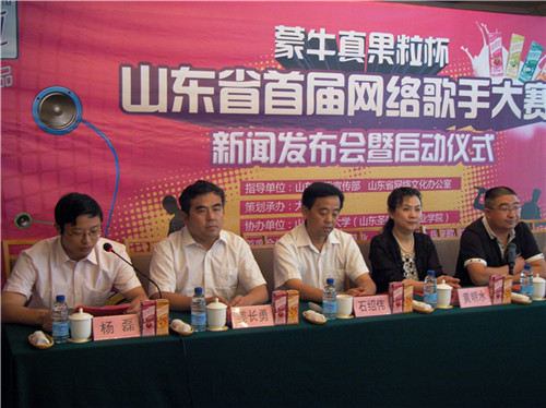 6月17日上午10:30,由山东省委宣传部、山东省网络文化办公室指导,大众报业集团大众网主办,山东圣翰财贸职业学院协办的“蒙牛真果粒杯”山东首届网络歌手大赛正式启动,大赛网上报名同时展开。山东省网络文化办公室副主任石绍伟、大众网副总编辑姜长勇、济南蒙牛乳业销售有限公司总经理沈文瑞以及我校学生处处长杨磊等出席了启动仪式。