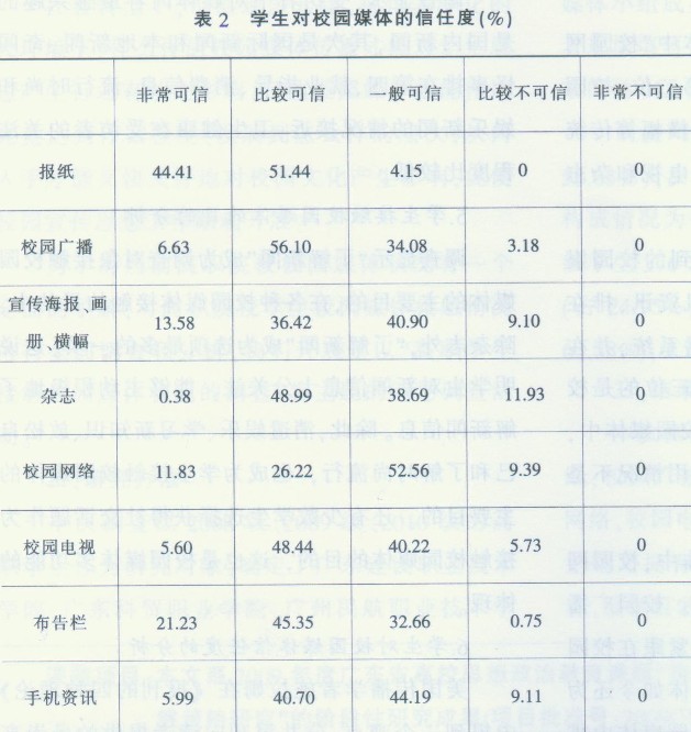 3.根据学生对校园媒体的信任度.大力增强校园媒体的公信力,以提升校园媒体的引导力