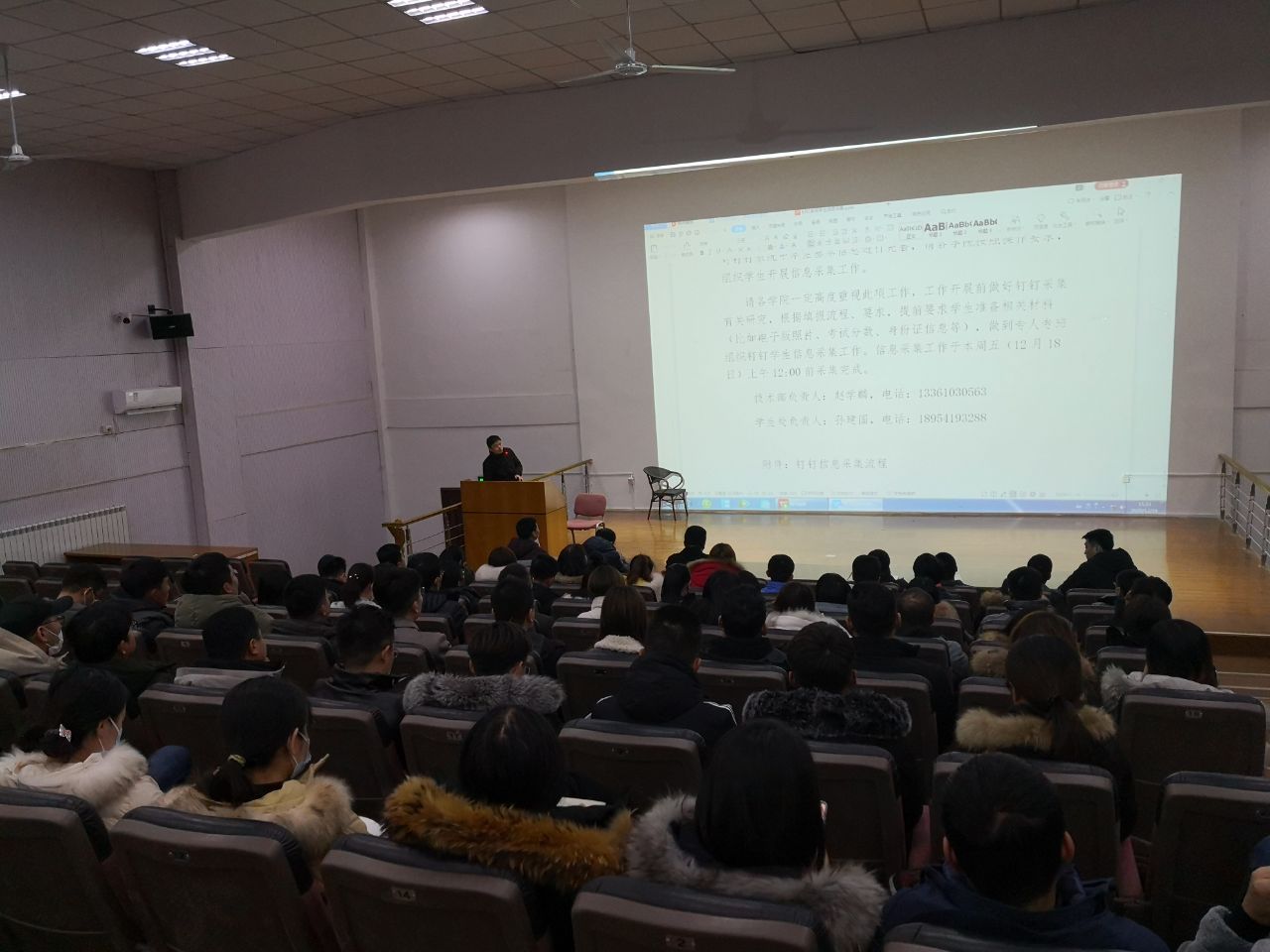 为有效提升工作效率,健全我校数字化管理内容,我校于2020年12月16日15:30在第一报告厅召开钉钉系统学生信息采集培训会议,要求各学院对钉钉系统中学生基本信息进行完善。参会人员有实训中心负责人、学生处工作人员、二级学院学生管理院长、团总支书记、全体专兼职辅导员。