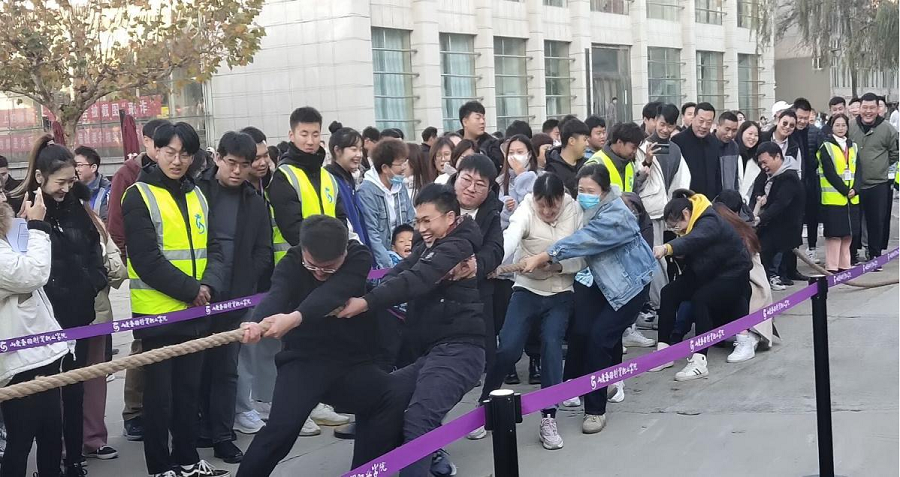为丰富我校教职员工课余文化生活,调动教职员工健身和工作的积极性。11月11日下午,由校工会组织的教职工拔河比赛初赛在吉纯楼下举行,学校分工会选派代表队参加了比赛。