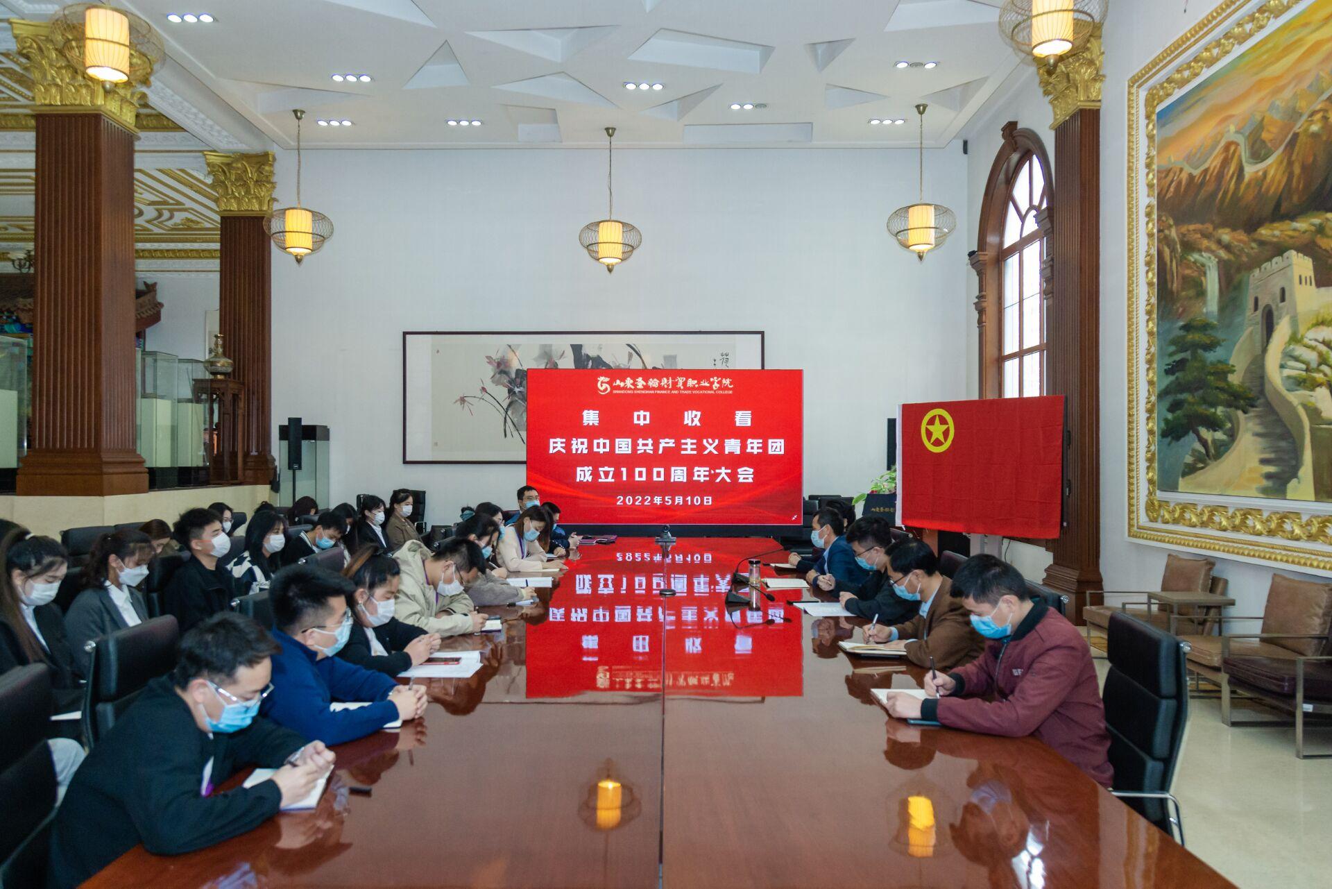 青春百年路,奋斗新征程。5月10日上午10点,庆祝中国共产主义青年团成立100周年大会在北京人民大会堂隆重举行,中共中央总书记、国家主席、中央军委主席习近平出席大会并发表重要讲话。山东圣翰财贸职业学院党委书记姚东方、副校长姜峤、工会主席许锐、校团委老师、各学院团委书记和学生代表在府邸二楼会议室集中收看了大会直播,并第一时间对习近平总书记重要讲话精神进行了深入学习和交流研讨。