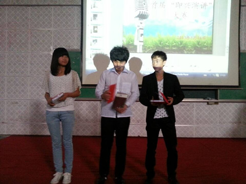 比赛中21名选手围绕“中国梦”、“勿以善小而不为,勿以恶小而为之”、“我爱我的班”“当代大学生风采之我见”、“校园禁烟,人人有责”、“快乐学习,快乐成长”等主题进行了精彩演讲。最终来自2011级的李禄明和2012级的梁正杰、董悦获得了本次比赛的一等奖。