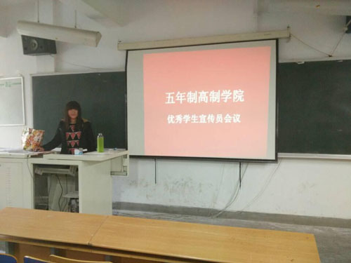 五年制高职学院一直本着“一切为了学生发展”的教育宗旨,在注重学生专业技能和基础知识培养的同时,创造一切条件千方百计提高学生的自身素养。宣传工作关系到我校的发展,为此我院组建了一支学生宣传队伍,经过近一年多教育培养,挑选出6位学生宣传骨干。11月7日中午13时,在D209教室召开学生宣传骨干专题会议,会议由6位优秀宣传员分别介绍自己的经验,此次会议收获颇丰,各位同学不仅学习了新闻稿写作经验,还增添了一份为学校发展贡献自己力量的使命感。