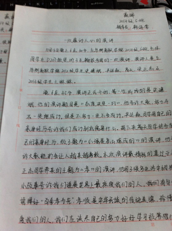燕娜是五年制高职学院2014级会计电算化专业5班的一位学生,该生因为语言表达能力和写作能力突出,被推举为该班的宣传干部。在近一个学期的学院宣传工作中,该生为学院的宣传工作做出了一定贡献,她善于发现学院之中同学和老师们身上的闪光点,注重新闻宣传的时效性,对增强班级凝聚力和树立良好的班风院风起到了积极的作用,她正在用自己的努力为学院和学校的发展贡献自己的一份力量。