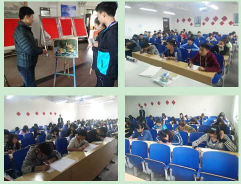 参加报名比赛的同学,早早就等在赛场的门外。整装待发,信心满满。漫展时同学们的画作在大厅获得了众多同学的关注,都在相互讨论。参加建筑和会计比赛的同学,在仔仔细细的做着手中的试卷,神情是那么的严肃紧张。现场的比赛氛围十分浓厚。