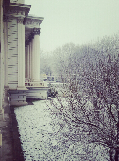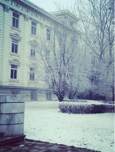 2016年1月6号,圣翰迎来了新年的第一场雪,一扫雾霾天给全校师生带来的阴沉心情。圣翰校园白雪飘洒,至早晨八点钟,大地已经一片斑白,整个校园呈现出崭新的面貌。微风飘荡,雪随风舞,天地间有了白雪的牵连而变得梦幻神奇。校园里的冬青等绿化植物披银戴玉,圣洁优雅。校园里的很多私家车的车顶上都顶着厚厚的白雪,显得憨态可掬,逗人喜爱。