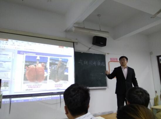 首先,班长刘雅琳让我们观看了关于吸烟危害的新闻报道,短片里展示了吸烟者与不吸烟者肺的区别和以小白鼠做实验的案例。世界上每六分钟就有一人因吸烟导致的疾病而死亡。最后几位学生纷纷发言来发表自己的观点和对抽烟危害的认识,抽烟不仅会危害个人的身体健康同时也会污染环境。以后会通过哪些方法彻底的完成戒烟。