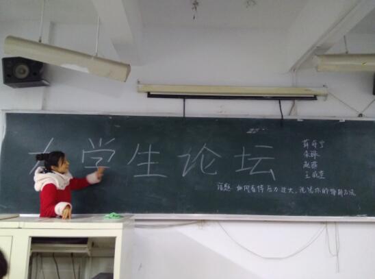 此次论坛由学习委员组织演讲,她向我们说了近几年来类似的案件并与同学讨论了在怎样的环境下会产生这样的压力又该如何减压。同学们踊跃发言讲了自己缓解压力的方法依次列举并从中选出了最有效最快速的缓解压力的方法,例如不要让否定的声音围绕着自己,其实自己还是有很多优点的,在心烦意乱的时候,放下你正在做的事情,听听歌,看看书。