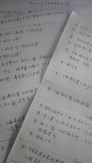 同学们就编排,节目,流程,道具,主持等各自提出了自己的看法,大家将提案优中择优,最后在第四稿终于定出了一套相对完善的编排。就节目,同学们决定以8—10个节目为好,节目艺术形式同学们希望百花齐放,基此原则,并为充裕晚会风格多种多样和欢乐性,节目形式以歌曲舞蹈,小品相声,魔术戏剧等进行报名,择选。就主持人,同学们在提出了无数人选之后,终于在以发掘、培养的前提下选定了男主持人张真以及女主持人孙文杰。