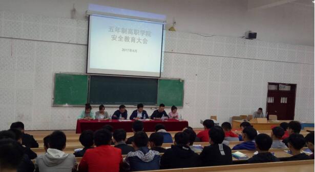为构建平安、和谐校园环境,预防校园暴力事件的发生,4月24日下午,五年制高职学院在D5报告厅召开了《杜绝暴力 从我做起》的安全教育大会,学院学生管理副院长李学治、辅导员张冲老师、罗新磊老师、王留升老师、沈玉迎老师以及2016级全体学生参加了大会。