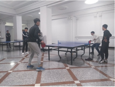 在5月14日的下午四点左右的时候,在山东联合大学F楼里,机电专业进行了乒乓球友谊赛。同学们热情高涨,早早准备了乒乓球和球拍等装备,等待在球场旁。这场友谊赛,一是促进了同学与同学之间的关系,二是有助于同学们的健康,常言道“生命在于运动”,只有运动才能增强体魄,为青春打下坚实的基础。友谊赛采用抽签的方式,选出要对战的同学来进行一对一对抗。