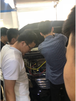 在实训中有同学帮助老师一块安装检测空调的机器。在这一次的实训中我们每一个同学都非常的认真听老师给我们讲的每一件关于汽车空调的知识。