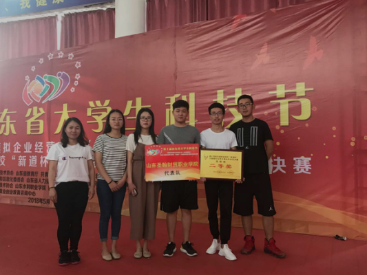 1.在日照举行的第十届山东省大学生科技节创新创业模拟企业经营大赛(职业院校组)暨第十四届全国职业院校“新道杯”沙盘模拟经营大赛山东省总决赛中,由房琭老师带领的五名会计专业的学生组成的五年学院代表队在62所参赛专科院校、116支参赛队伍中脱颖而出,取得了山东省赛二等奖的好成绩。