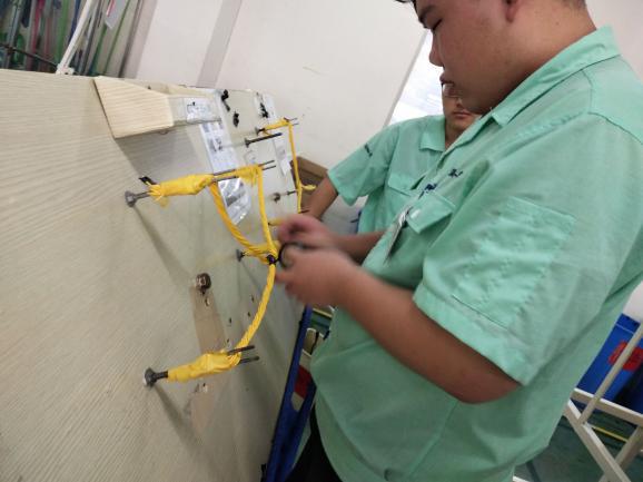 图为学生在江苏住电装有限公司进行安全培训
