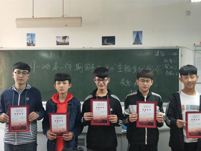 2018年10月9日下午17:30分五年制高职学院17级建筑班进行了2017-2018学年“圣翰全优宿舍”活动评比表彰大会,班级中五个宿舍的同学获此荣誉并受到表彰,分别为7#楼901、1004、1005、1007、1010,各宿舍长分别代表舍友上台领奖,并表示此荣誉是属于我们宿舍共同的荣誉,这学期继续保持良好的状态,共同努力加油。对于未获得表彰的宿舍17级建筑专业辅导员李占贞老师也给予了精神上的支持,表彰会上讲到:“你们这次未获得属于你们的荣誉不代表就是失败,在错误中成长,弥补遗憾,希望你们这学期可以通过你们集体的努力,夺得属于你们的奖章,相信你们可以做的更好,加油,别气馁,端正态度”。