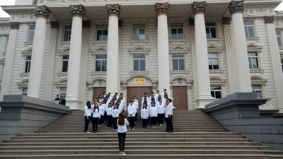 为庆祝中华人民共和国成立七十周年及五四运动一百周年,山东圣翰财贸职业学院合唱比赛初赛于4月10日下午四点在教学楼前拉开帷幕。