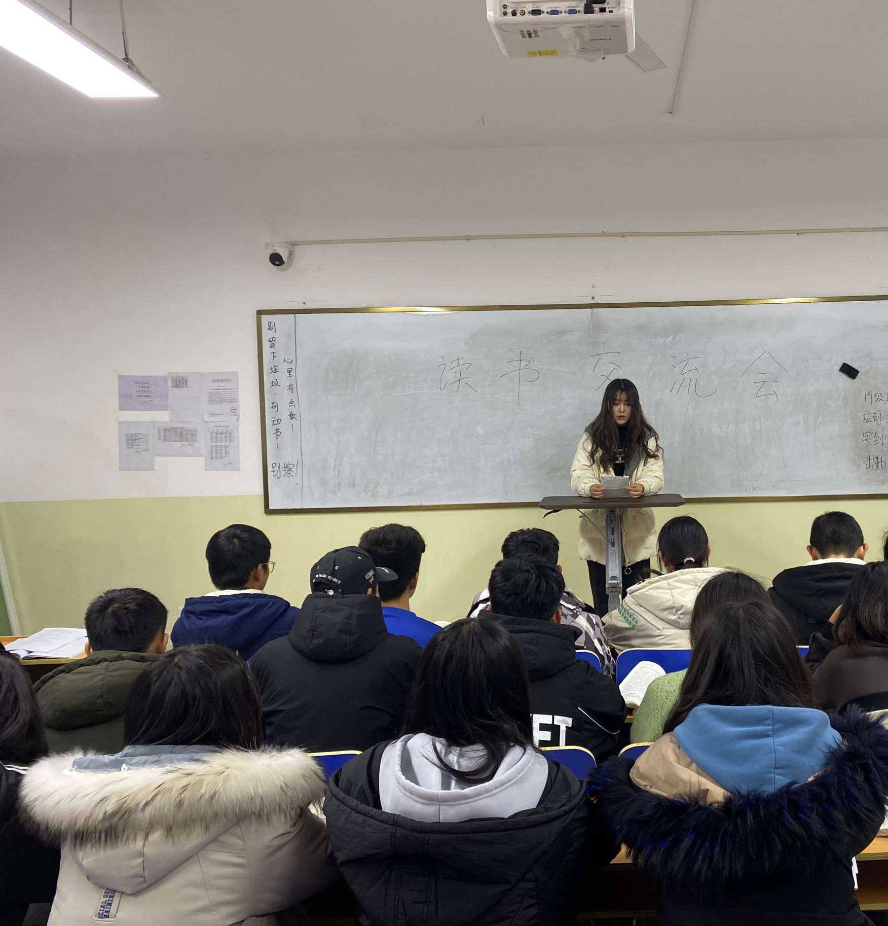 12月12日晚7:30,山东圣翰财贸职业学院工商七班在D105教室举行读书交流会,这是新任团委书记上任以来第一次读书交流会,辅导员孙明磊老师及七班全体成员参与本次读书交流会,本次参加的人员有曹泽同欣,邢正浩,胡欣悦等人。