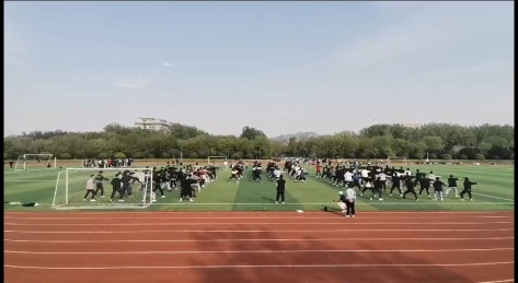 为迎接即将到来的学校运动会,学校各种比赛项目开始了筹备工作,武术方队的操练也如火如荼的进行着。 武术方队,由青协苏主席组织,其中一部分人员来自青协,其余人员由同学们自发踊跃报名参加。参与学院极广,五年制高职学院、工商管理学院、信息工程学院、财贸学院、国际交流学院、艺术学院、技术工程学院以及智能工学院。共计8个学院,参与人员约有130人,其练习时间为3月29日至4月15日每天的早晚自习,练习地点为F楼前的大广场之上。