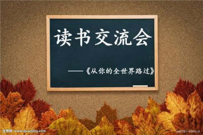 5月12号晚自习,2020级动漫1234班开展了“读书交流会”的活动。而我为大家推荐的书是张嘉佳的《从你的全世界路过》。这是一本看似纷杂凌乱的的睡前故事,但里面的故事却有条不紊的向你描述着人生的点点滴滴,仿佛就像在写你自己。像朋友在深夜跟你在叙述,叙述他走过的千山万水。