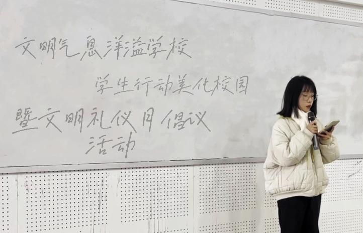 此次组织演讲比赛的是五年制高职学院的学子门,主题为“文明气息洋溢学校,学生行动美化校园,暨文明礼仪月倡议活动”。