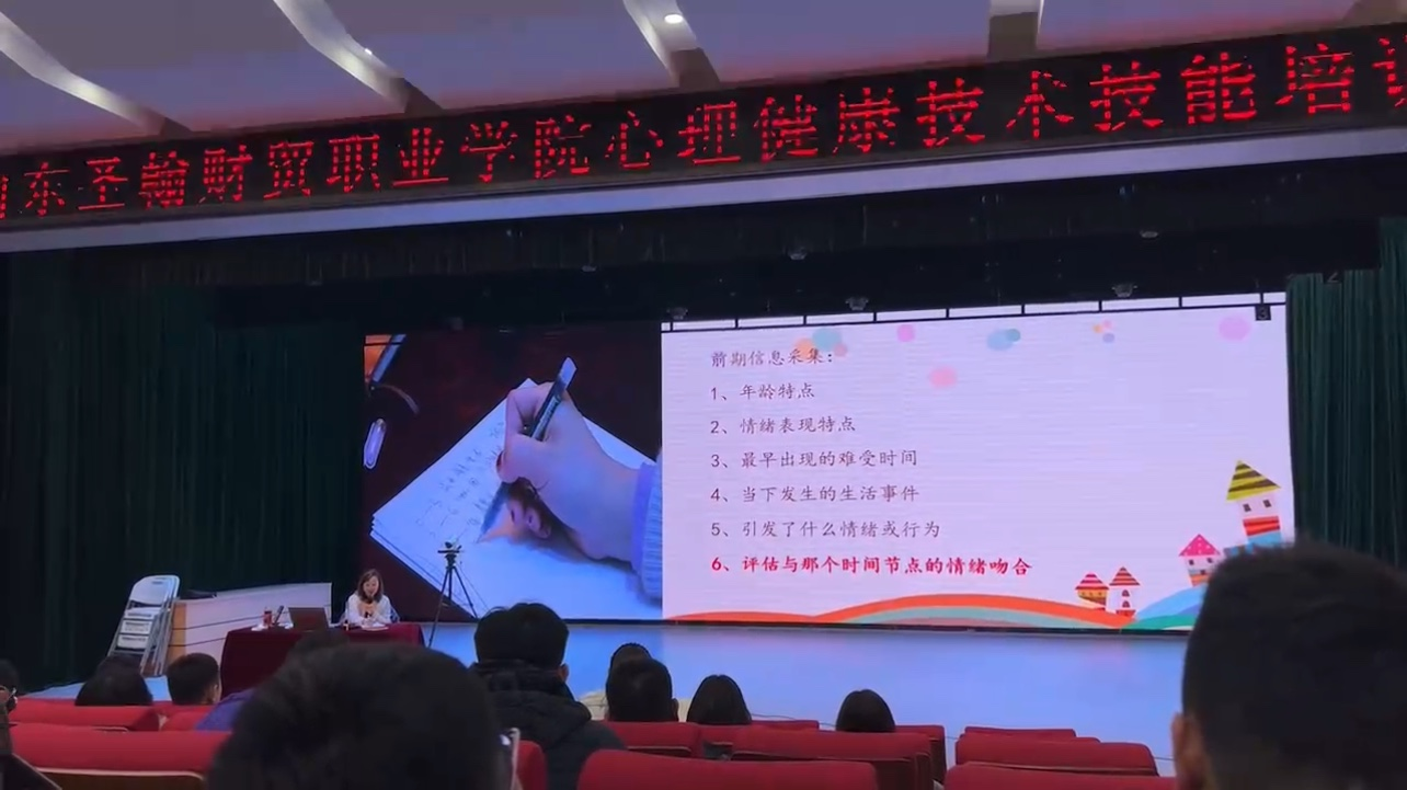 为充分做好学生心理健康教育工作,促进心理育人工作提质增效。2023年2月14日上午,学院在二楼报告厅召开了全体学管人员心理健康技术技能的培训工作,全体学管人员及部分校领导参会。 学校心理培训教师姚莹莹提出,关注学生心理健康是时代的要求,帮助学生解决心理问题是每位教师应尽的职责。每位学管人员需不断学习心理知识,做一个积极向上的人,并用良好的心态去感染身边的每一个学生,主动帮助学生解决心理问题。