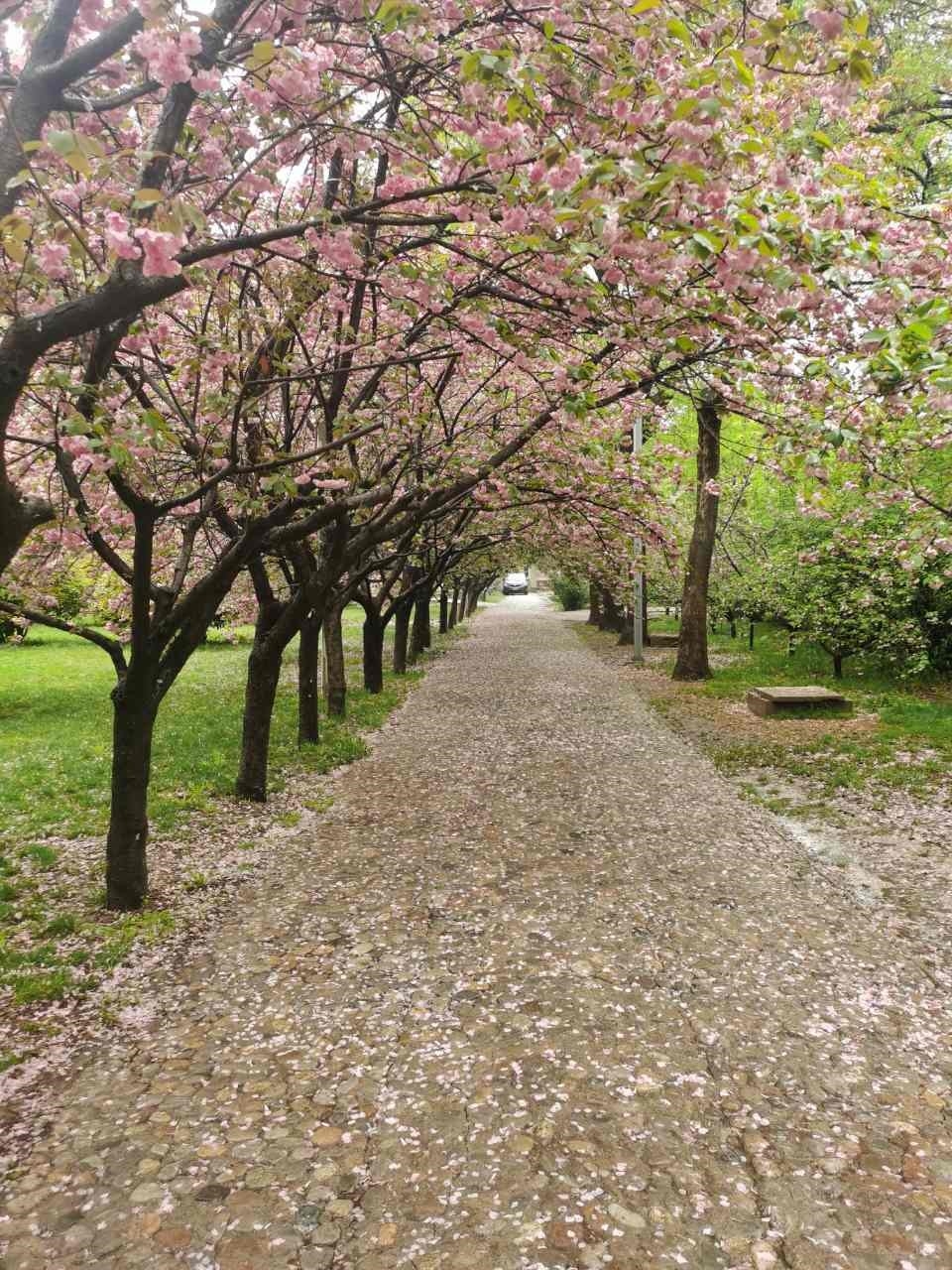 雨后初晴,圣翰的校园中满世界都是春的气息。不在知不觉中,我步入了樱花小径,又是一年樱花季!你瞧那满树的樱花都笑开了怀,熙熙攘攘地挤在枝头,一团团抱在一起,像圆滚滚的小球,把花枝都压弯了。那花瓣是极淡极淡的粉色,好似美丽的梦。五片花瓣紧紧地簇拥在一起,纹理细腻清晰,晶莹而透明,看上去软软的,像是大自然的珍藏。