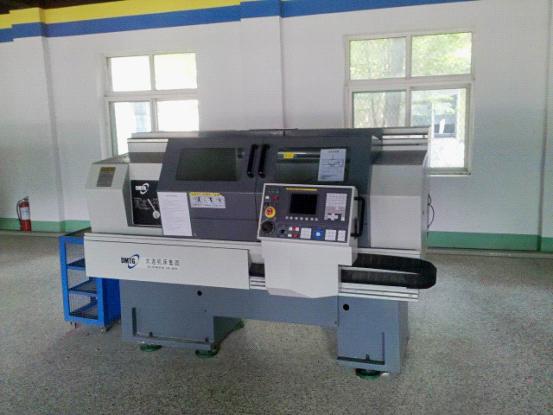 数控车床型号:CKA6136数控车床,是靠程序控制的自动化机床,大连机床厂生产,日本FANUC(发那科)控制系统,两轴联动,主轴最高转速为3000r/min,床身上最大工件回转直径为360mm;操作时,将编辑好的数控程序通过机床操作面板输入到机床控制系统中,进行对工件的自动加工;数控车床可以加工直线圆柱、斜线圆柱、圆弧和各种螺纹、槽、蜗杆等复杂工件,这个场地主要用于数控专业、机电专业学生实习操作,以及教师和兴趣小组科研训练使用。