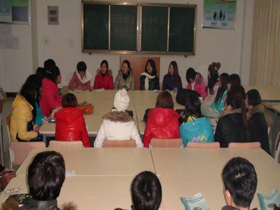 英语在国际贸易实务专业中的关键地位,鉴于期中教学检查中学生座谈会时学生普遍反映的关于英语学习方面存在着一些障碍、找不到正确的学习方法等问题,我教研室于2011年12月7日,在F412举办了“国际贸易实务专业英语学习交流会”,宋明月老师和盛雅欣老师参加了会议,同时也邀请了2009级英语专业的刘程程同学和2010级英语专业的张娜同学。