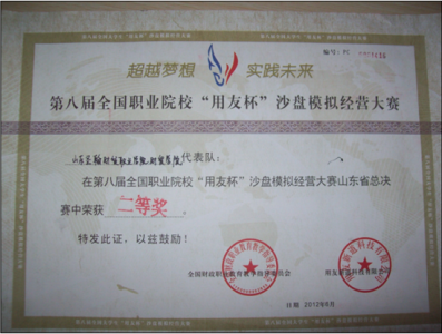 值我校迎评促建关键时期,财贸学院认真贯彻十六号文件精神,以此为指导,积极开展各项评建工作。以“超越梦想,实践自我”为主题的第七届全国职业院校“用友杯”沙盘模拟经营大赛山东省总决赛于2011年6月11日在泰安举行。我校派出了由孙键、林志壮、唐言言、李杰、张诗思组成的山东圣翰财贸职业学院财贸学院代表队参加比赛。