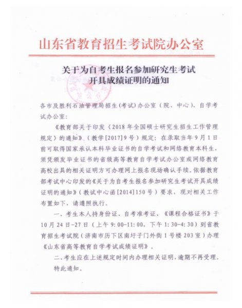 关于我校已毕业自考生报名参加研究生考试开具成绩证明的通知